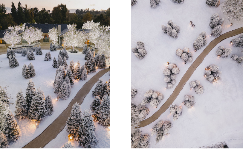 If anyone can manifest a white Christmas Eve in Los Angeles, it’s Kim Kardashian. Kim hosted the family’s annual Christmas Eve party and turned her home into a decked-out winter wonderland just for the occasion.