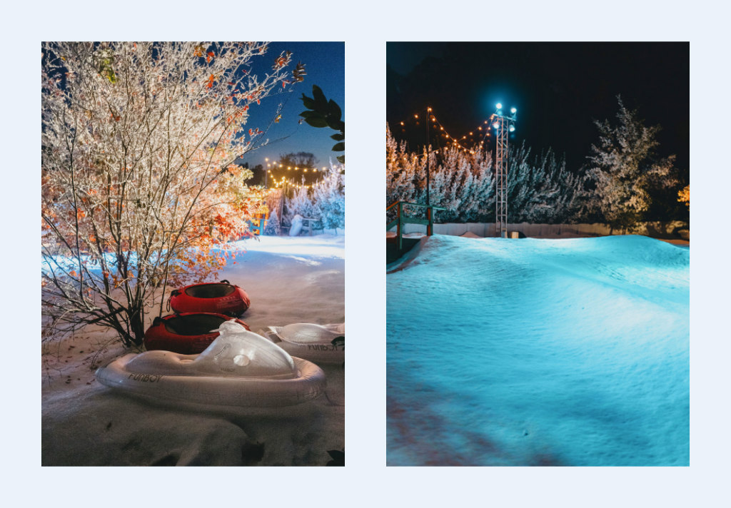 And, last but definitely not least, the Images team was outside on the snow hill adding a beautiful blue light. Kim Kardashian glowed as she was captured taking a slide down it.